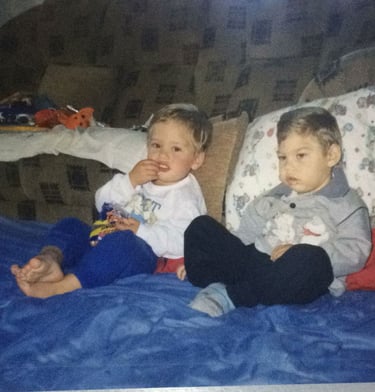 Nascido em 2001, em Passo Fundo, cresci ao lado do meu irmão gêmeo, Lucas, que convive com paralisia cerebral. Com ele aprendi resiliência e gratidão. Aos 13 anos deixei o sonho do futebol para trabalhar e ajudar em casa, mas foi na tatuagem que encontrei meu caminho.